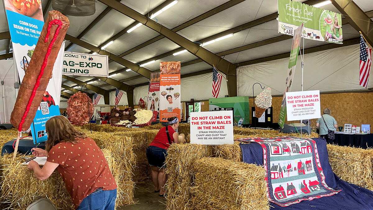 Berrien County (Michigan) Farm Bureau created an interactive straw maze at the county fair for children to discover even delicious fair food comes from the farm. The straw maze included stations where kids learned about the commodities used in the foods. The county Farm Bureau also provided the children a recipe and checked off their visit to the maze with a punch card, which the children could turn in for a prize once it was full. More than 2,800 kids and numerous adults visited the county’s “No Farmer, No Fair Food” display.