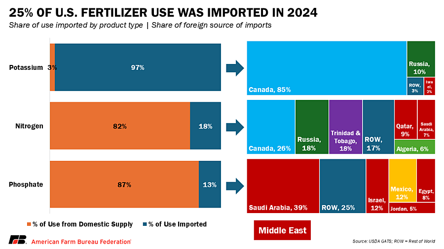 In the Middle East, rising tensions between Israel and Iran have raised risks of regional disruption. The area is critical for global natural gas and ammonia production, as well as containing shipping routes like the Suez Canal that connect fertilizer producers in North Africa and the Gulf with European and American buyers. Morocco and Saudi Arabia are also expanding phosphate capacity, making the region even more important for global supply security. Any instability that interrupts these flows can amplify the price pressures farmers already face.