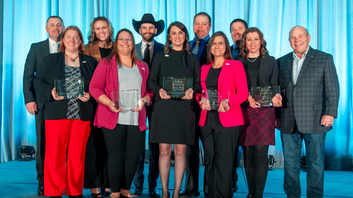 (L to R) Jason Fellows, Idaho; Eileen Jensen, New York; Laura Haffner, Kansas; Rachel Harmann, Wisconsin; Ben Menges, Arizona; Dana Stewart, Arkansas; Russ Kohler, Utah; Heather Lifsey, North Carolina; Seth Earl, Michigan; Megan Richner, Missouri; and AFBF President Zippy Duvall.